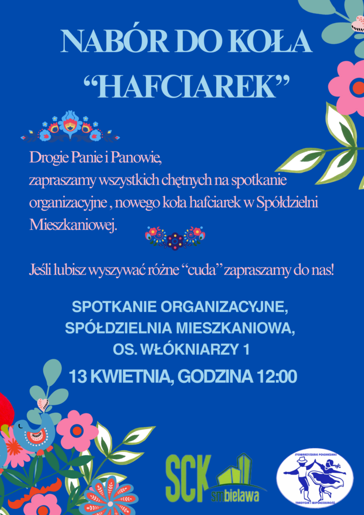 Zapraszamy wszystkich chętnych do nowego koła hafciarek.